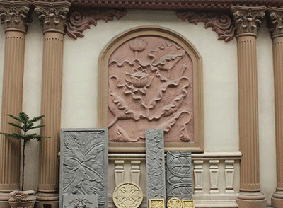 本企業(yè)的產品被廣泛應用于建筑室內及外墻的裝飾、裝修工程和市政、園林景觀的造景等。主要產品有檐線、門窗裝飾線、穹頂、扶手墩、山花、浮雕裝飾板、中式西式的傳統裝飾、歐式羅馬裝飾柱、仿蘑菇石、仿剁斧石、仿干粘石、假山、噴泉、圓雕、藝術壁畫、外墻掛板、室內石膏線、燈盤、浮雕、羅馬柱等。均可根據客